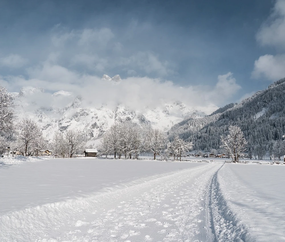 Mit einem Schritt vor die Tür stehen Sie als Gast unseres Hauses schon mittendrin im Winterparadies. Die Lifte und Seilbahnen des Werfenwenger Skigebiets führen direkt daran vorbei. Und auch der Einstieg in die Langlaufloipen ist nur etwa 300 Meter entfernt. Doch lieber Winterwandern? Dann: Schuhe an, tief durchatmen und los – hinein in eine stille, glitzernde Winterwelt, die schöner kaum sein könnte.
